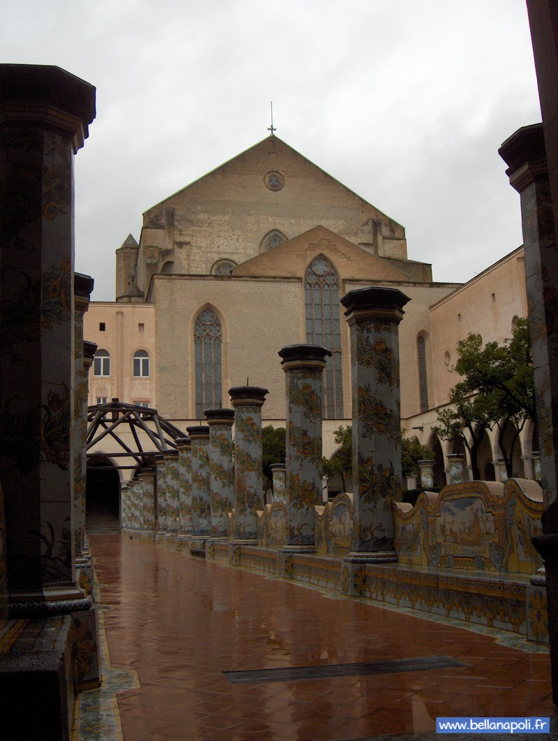 Construite par Robert d'Anjou, l'immense église de style gothique jouxte un magnifique cloître remanié au 18ème sicèle, et décoré de majoliques, célèbres faïences napolitaines.